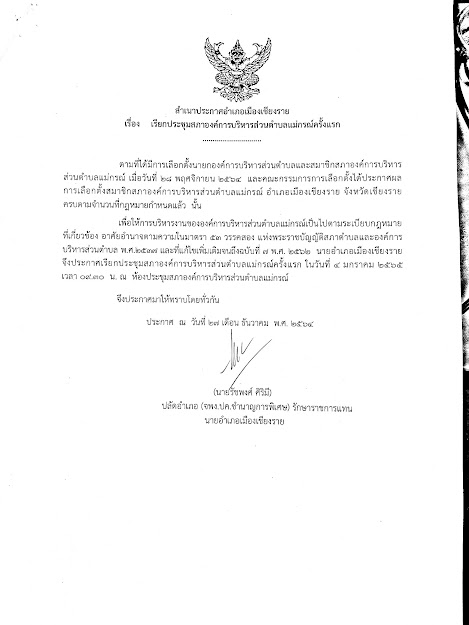 ประกาศเรียกประชุมสภาองค์การบริหารส่วนตำบลแม่กรณ์ ครั้งแรก