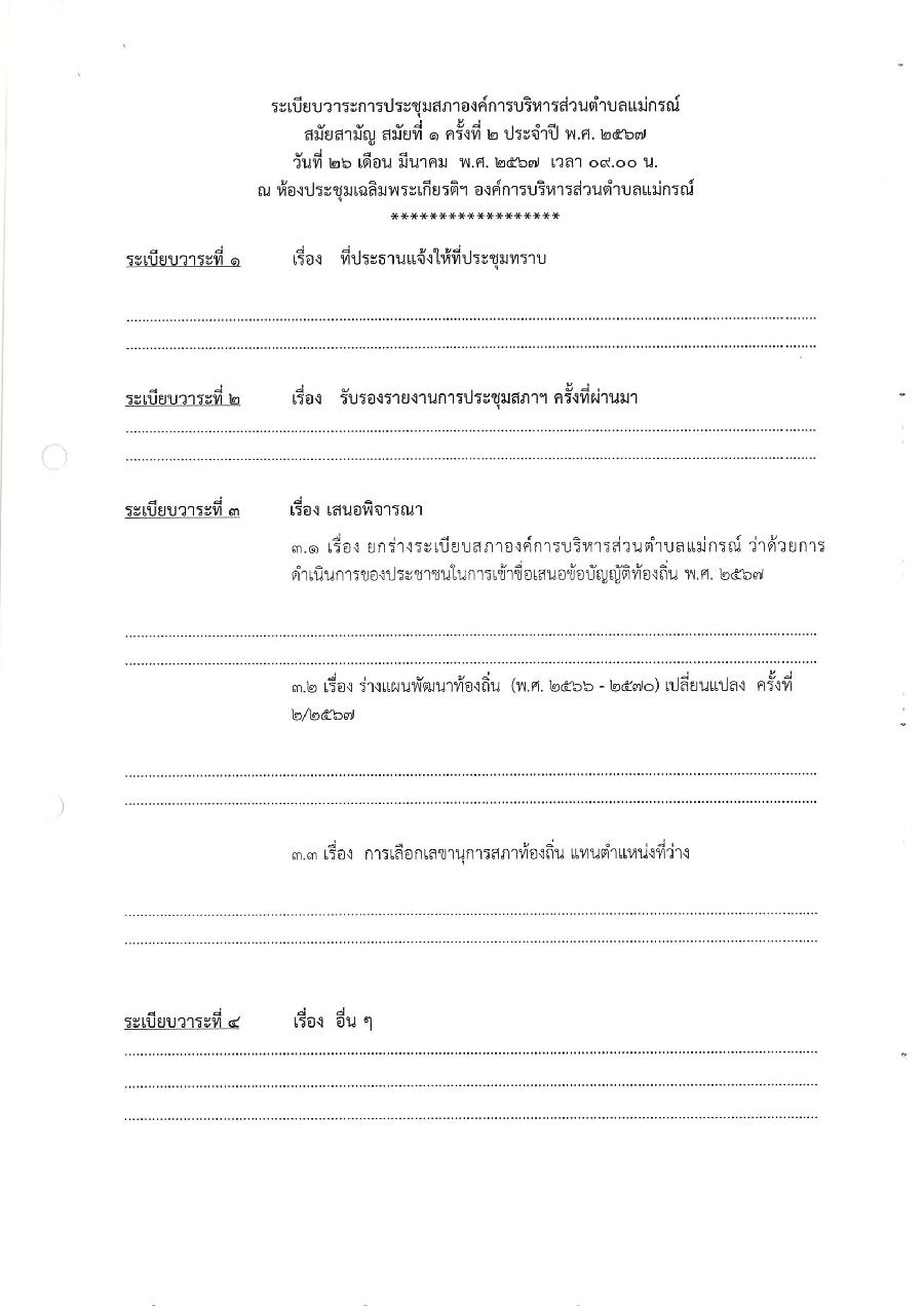 ▶▷▸ขอเชิญเข้าร่วมรับฟังการประชุมสภาองค์การบริหารส่วนตำบลแม่กรณ์ สมัยสามัญ สมัยที่ 1 ครั้งที่ 2 ประจำปี พ.ศ. 2567 ในวันที่ 26 มีนาคม 2567 เวลา 9.00 น. เป็นต้นไป ณ ห้องประชุมเฉลิมพระเกียรติฯ ✅