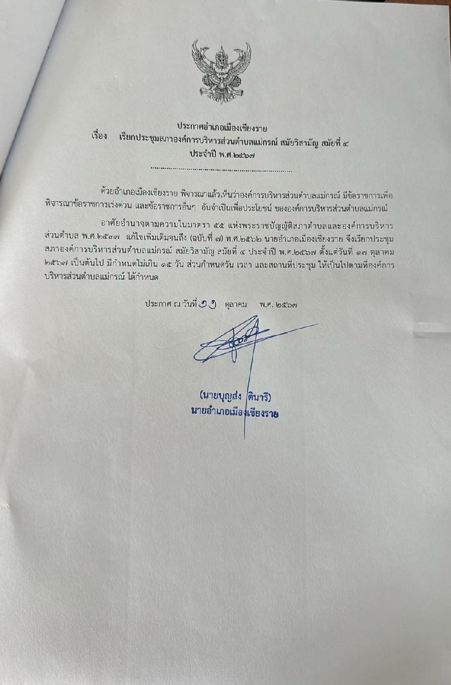 ▶▷▸นายอำเภอเมืองเชียงรายเรียกประชุมสภาสมัยวิสามัญ สมัยที่ 4 ประจำปี 2567✅