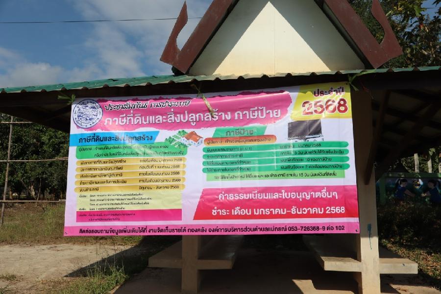 ประชาสัมพันธ์การชำระภาษี ที่ดินและสิ่งปลูกสร้าง ภาษีป้าย ค่าธรรมเนียมและใบอนุญาตประจำปี 2568 หากมีข้อสงสัย สามารถติดต่อ-สอบถาม ณ ที่ทำการองค์การบริหารส่วนตำบลแม่กรณ์ หรือ โทร 053-726368-9 ต่อ 102 ง