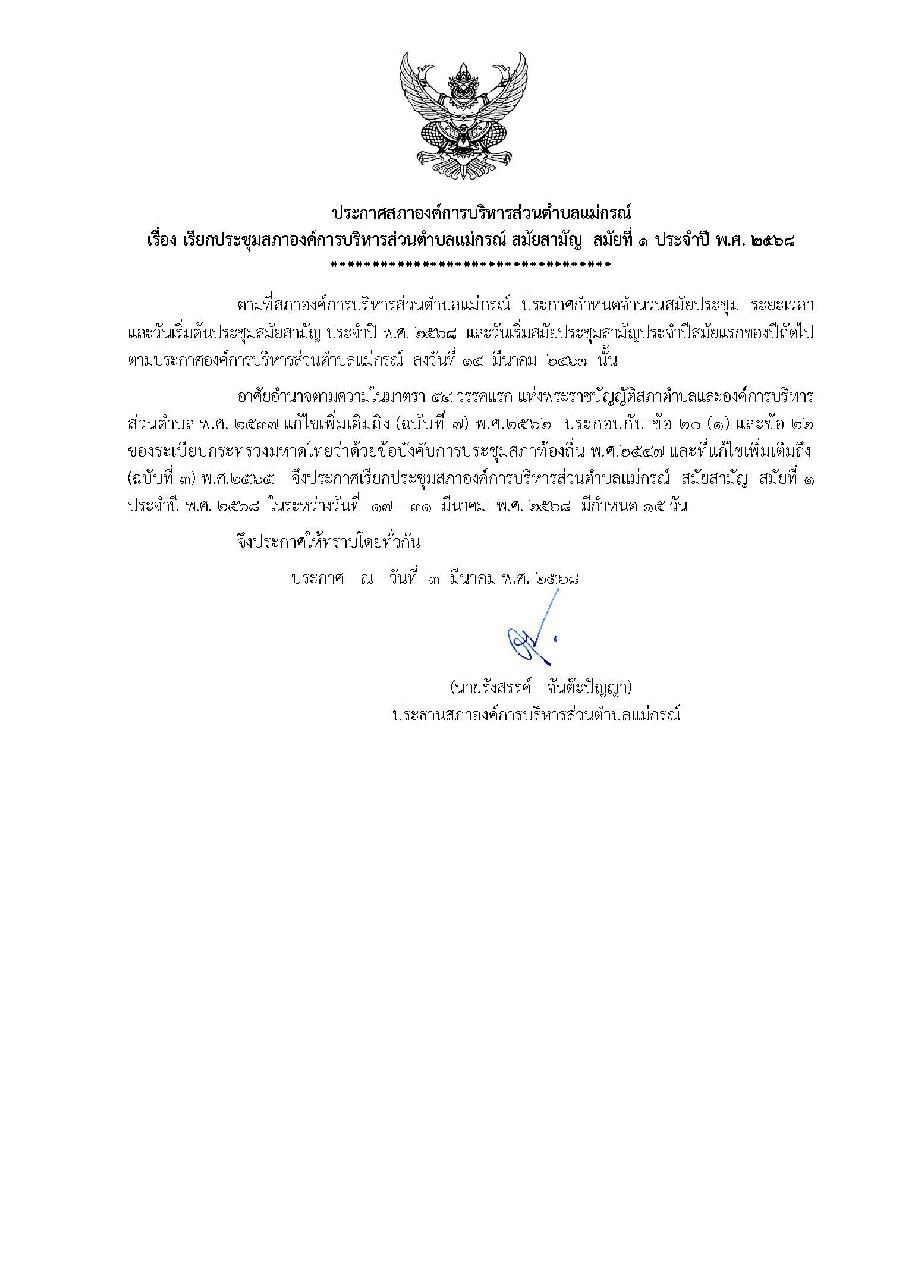 ▶▷▸เรียกประชุมสภาองค์การบริหารส่วนตำบลแม่กรณ์ สมัยสามัญ สมัยที่ 1 ประจำปี 2568✅