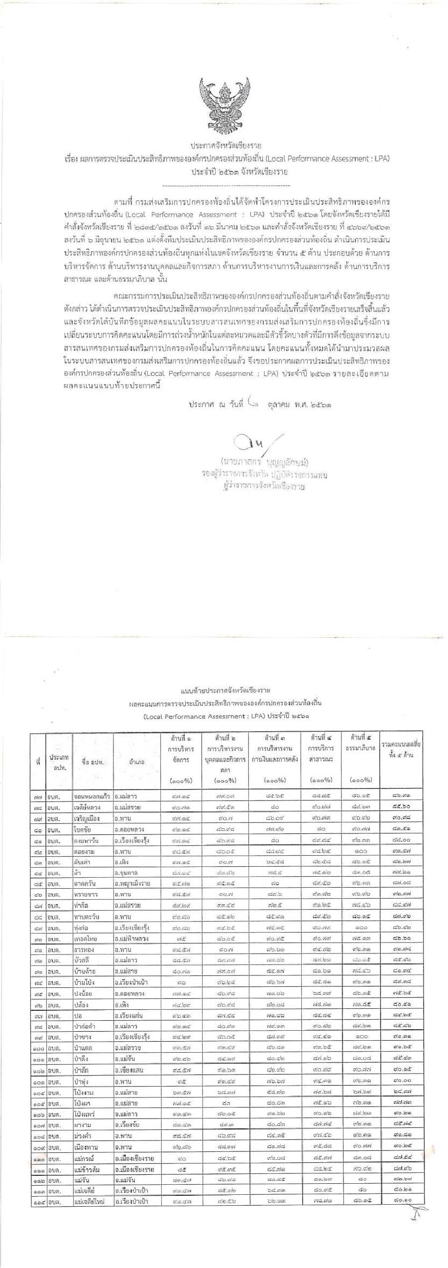 ประกาศผลการตรวจประเมินประสิทธิภาพขององค์กรปกครองส่วนท้องถิ่น (LPA) 2561