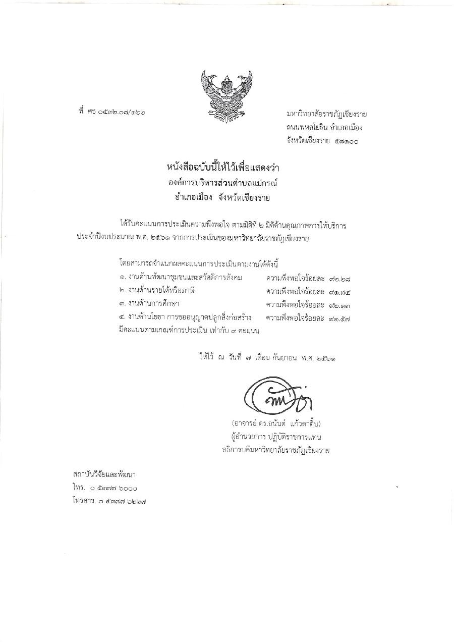 รายงานผลการปฏิบัติงานของนายกองค์การบริหารส่วนตำบลแม่กรณ์