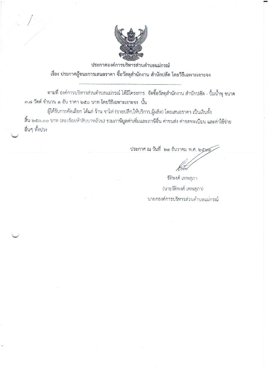 ประกาศ ผู้ชนะการจัดซื้อจัดจ้างหรือผู้ได้รับการคัดเลือกและสาระสำคัญของสัญญาหรือข้อตกลงเป็นหนังสือไตรมาสที่ 4