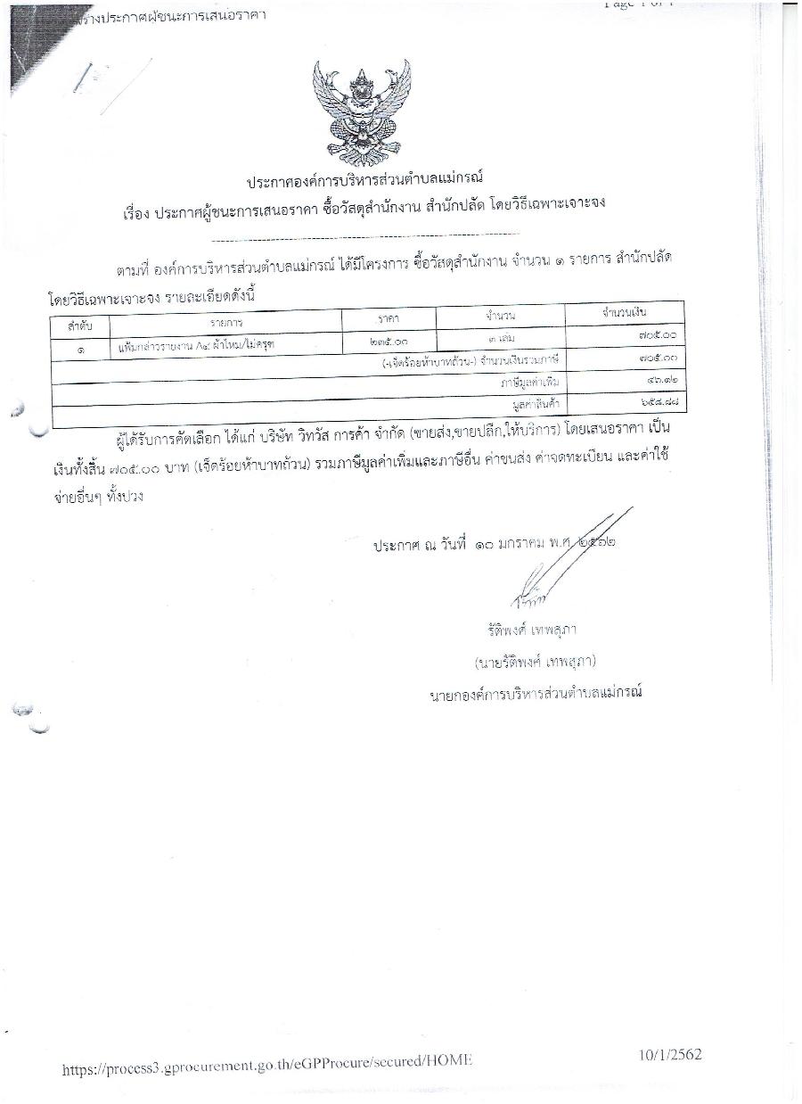ประกาศผู้ชนะการเสนอราคา จัดซื้อวัสดุสำนักงาน สำนักปลัด